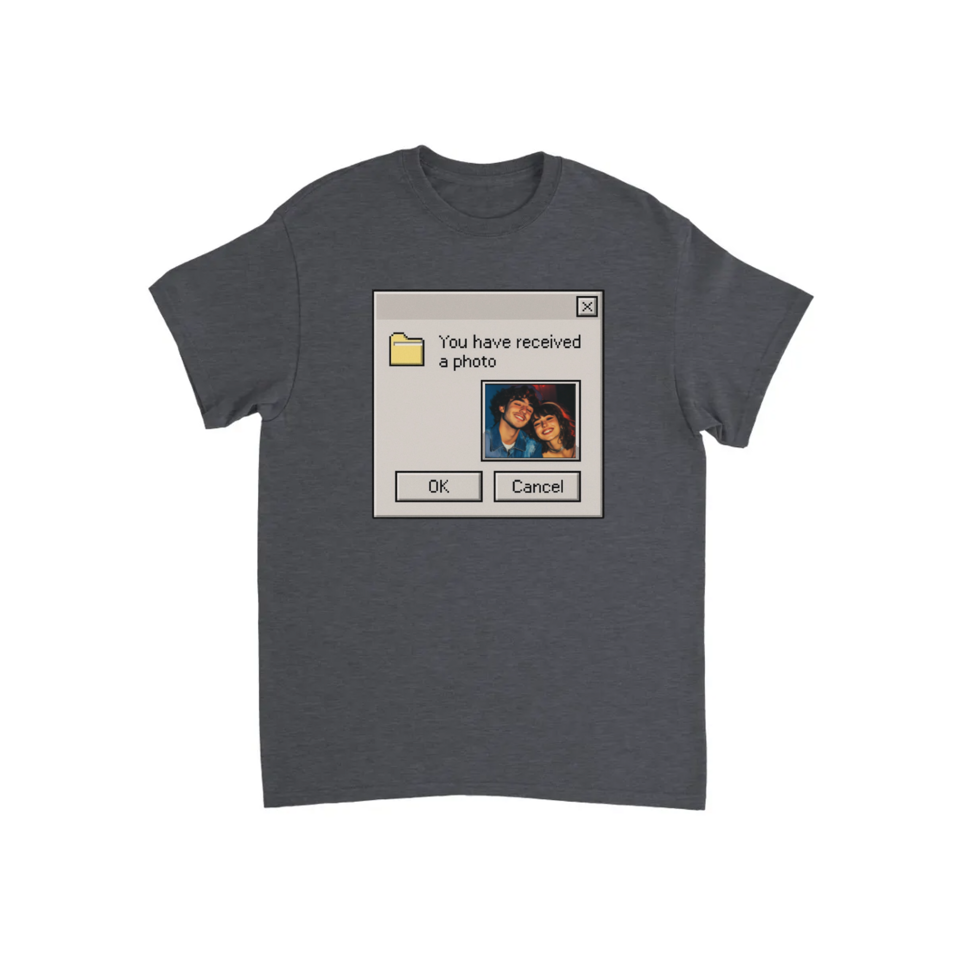 Throwback to when getting a photo was the highlight of your inbox. Retro pixel vibes meet your modern memories – add your own picture and keep the nostalgia alive!