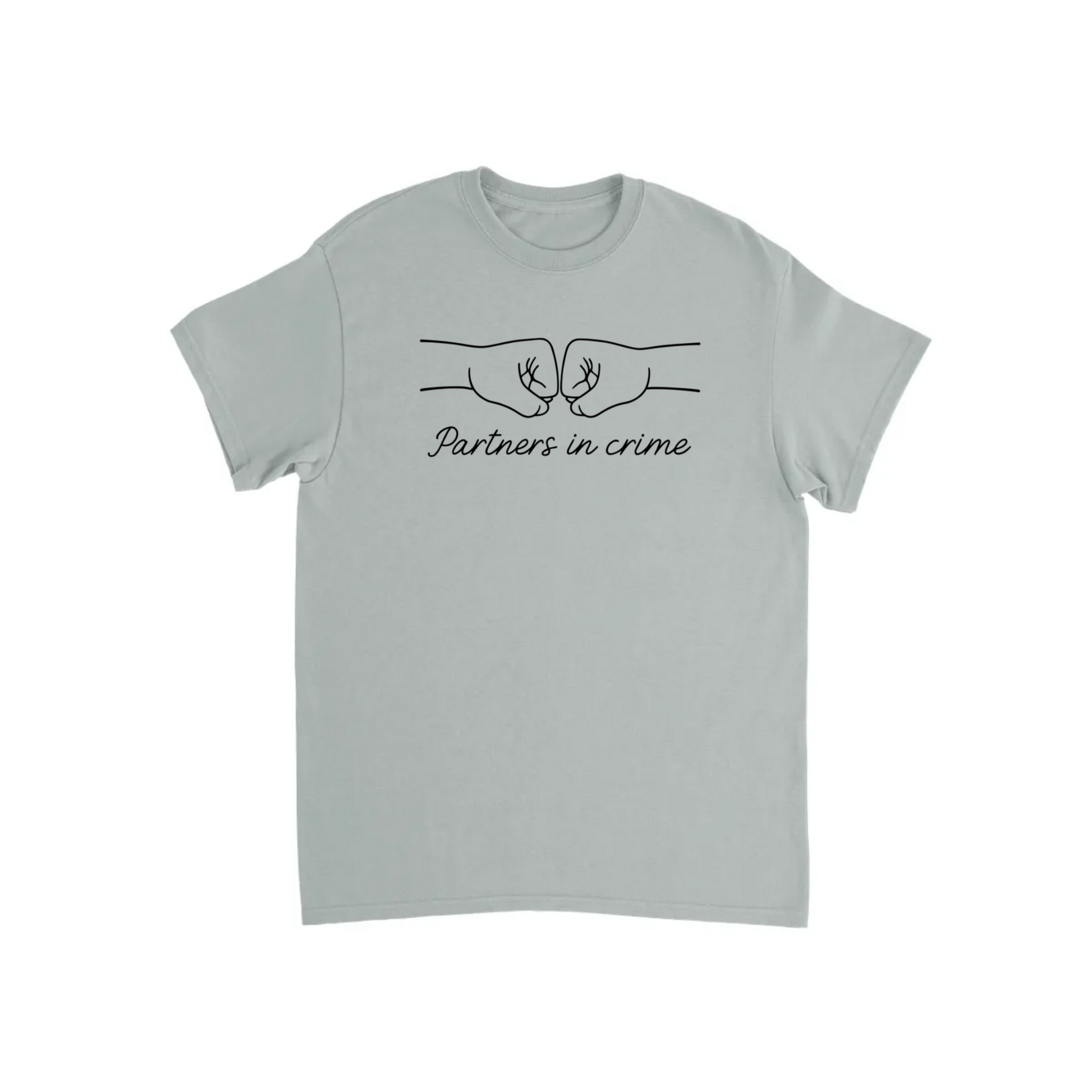The Partners in Crime t-shirt is a fun and meaningful way to show your bond with someone close – whether it’s your best friend, sibling, or partner. With its relaxed fit and high-quality cotton, it’s perfect for everyday wear.